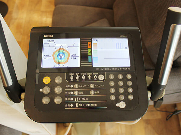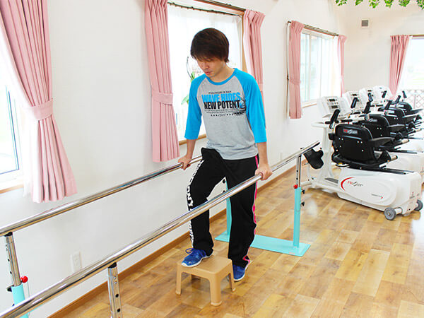 プレステップ・平行棒等、多彩な動きでリハビリ力のアップを目指す、プレミアムジムを完備しています。筋肉量やバランスが測れる体組成計も置いています。